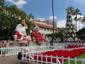 We’re in Hawaii! I had a filing the night before that kept me in the office about a million hours later than I expected, we packed half the things we meant to pack and none of our laundry, but we made it on the plane (I think I set a new record for the most hours I’ve or anyone has ever slept on a single flight) and now I’m sitting at B2’s family’s kitchen counter, blissfully free of legal research and two days away from spending my first Christmas in Honolulu. I visited in January once before, but I’ve never been here for Christmas itself, so I thoroughly enjoyed this surfer Santa and his muumuu-clad Mrs. Claus, I’ve asked B2 about five times too many whether people actually say “mele kalikimaka,” and I’m gleefully sure I just overheard the words “ahi poke for Christmas.” But sunshine aside, it’s still pretty much just like Christmas with my family where it counts — with endless amounts of food, aunties and uncles galore, and B2 and his sister making fun of each other all day, and that coziness is what makes me the happiest about being here. (Also the ahi poke.)