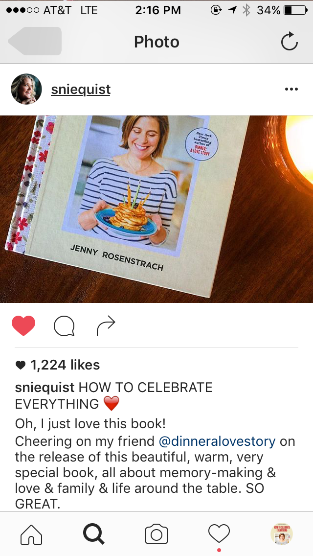 I promise we will be back to regularly scheduled programming (read: no more shameless self-promoting) very very soon — but as publication week of How to Celebrate Everything wraps up, I just wanted to thank you all for rising to the occasion. I know it was not the most celebratory of weeks in the wider world, and who knows what next week will bring, but the notes I have been getting from all you thoughtful readers out there have been amazing and affirming and once again remind me how lucky I feel to be part of a community like this one. I’m going to sign off with some of my favorite HTCE sightings in the wild — remember: tag me for reposts –and hope you have a great weekend filled with family walks (page 98) and Brown Butter Apple Pies (page 193) and Sunday Dinners (page 236).