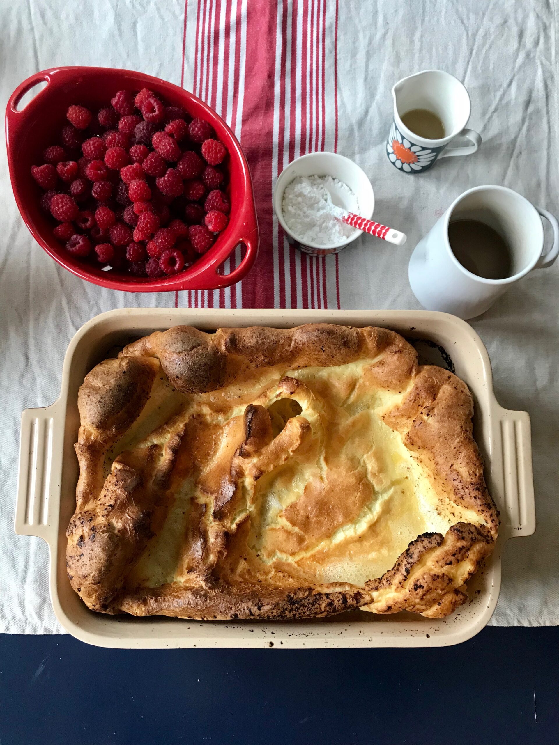 The short answer is: At my friend’s kitchen table. Abby and I were in Seattle for only three and a half days, so, as you can imagine, our Food Town Anxiety Syndrome* was at an all-time high, and we pretty much never stopped moving (or eating). Here is the official round-up where I share all the peripatetic details, but I’m writing today’s post as a reminder to my future traveling self, and to anyone else out there who cares, that the best meals on the road are not necessarily the ones that feel like boxes you need to check, or the ones that show up on an Eater heat map or a Bon Appetit city guide. It’s so easy for me to get obsessive about the bucket list — on Friday, we actually caught ourselves planning dinner in Fremont as we were shoving Capitol Hill tacos into our mouths for lunch — but I was better this time. We were staying with my college roommate Jenn and her family, and they were the best hosts because they made up two lovely beds for us, handed me the keys to their 2002 Volvo, and folded us right into their weekend routine. Every morning I woke up with the thought: I’m in Seattle, I need to track down the best cup of coffee. But every morning I wandered down to Jenn’s kitchen where her husband Ben had made a fresh pot, and it was as good as any cup I had all weekend, especially when enjoyed sitting in the cozy nook of their craftsman-style kitchen. And yes, there were stuffed doughnuts and frothy lattes and oysters so meaty and flavorful I thought I’d never recover from the bliss, but the truth is, my favorite meal was the Dutch Baby Jenn made us on Saturday morning. Whether guests are there or not, it’s her go-to weekend breakfast, she said, because she can’ t mess it up — unlike pancakes, which she finds more fussy and are strictly Ben’s domain. She topped each serving with raspberries (“Abby, come pick the berries for your breakfast!” I heard her yell from the backyard, every square inch of which is covered with lettuces, berry bushes, and fruit trees), a squeeze of fresh lemon juice, and a shower of powdered sugar. I’m never not making this for house guests again.