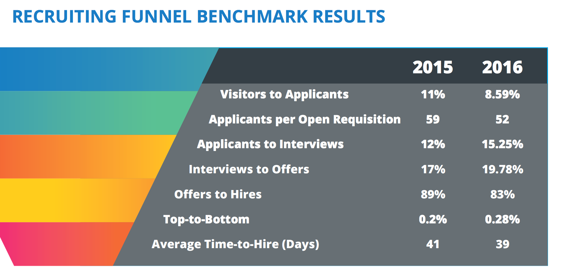 We also compiled benchmark data for top ranked companies like the Inc. 5000 and Fortune 500 to help you compare your recruiting efforts to similar companies, as well as the best in the business. This is one of my favorite sections of the 2017 report, and I hope it helps provide the insight you need to understand what it will take to match the performance of those companies you’re aspiring to emulate!
