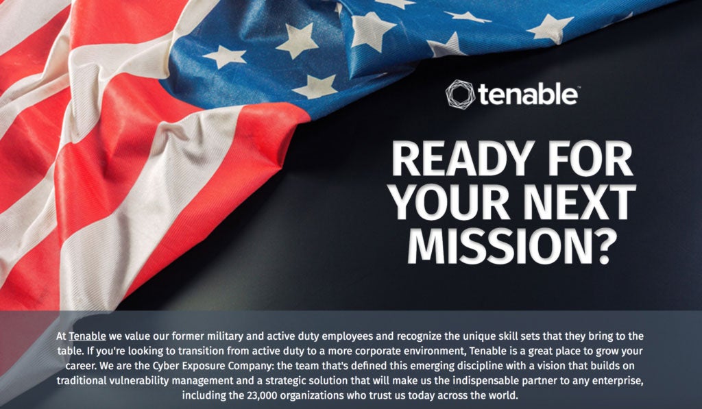Leading the Global Recruiting team for one of the world’s most-respected Cyber Security Companies in the world, Sean Mitchell has made hiring Military Veterans a priority. He’s done so by creating a culture where his team is constantly attracting, interacting with, and hiring veterans for key roles. By leveraging Jobvite Engage for their recruitment marketing CRM, and our Strategic Services team, Tenable has created an interactive landing page to attract Veterans. They can find out more about the company, hear the stories of current employees that served in the military, and get directed straight to the Tenable Career Website to apply for jobs.