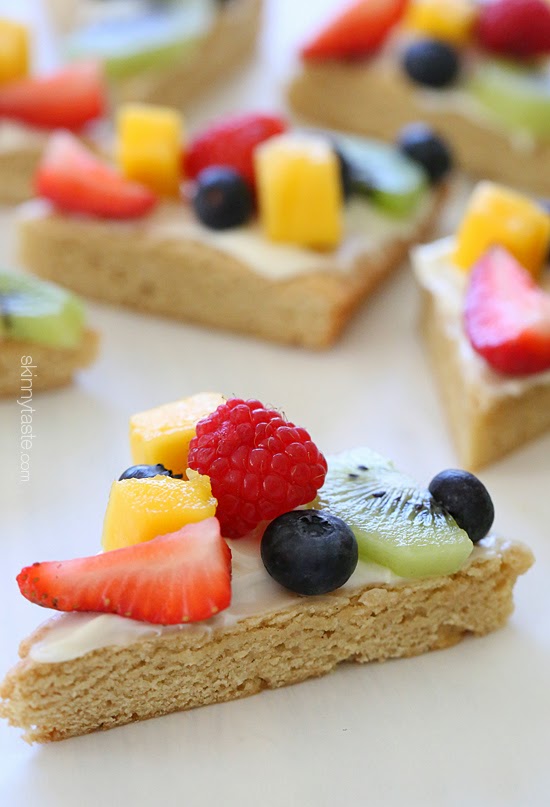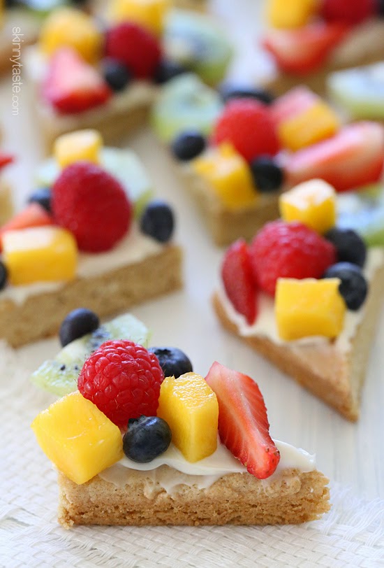 Need a colorful dessert idea for Mother's Day? Try these lightened up white chocolate cookie bars topped with cream cheese frosting and fresh fruit. The perfect dessert for Spring or Summer!