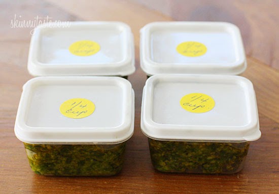 As much as I look forward to the Fall, I'm not quite ready for summer to be over. Having fresh herbs at my fingertips is what I'll miss the most, so I'm taking all my basil and making skinny pesto with it to freeze and use throughout the year.