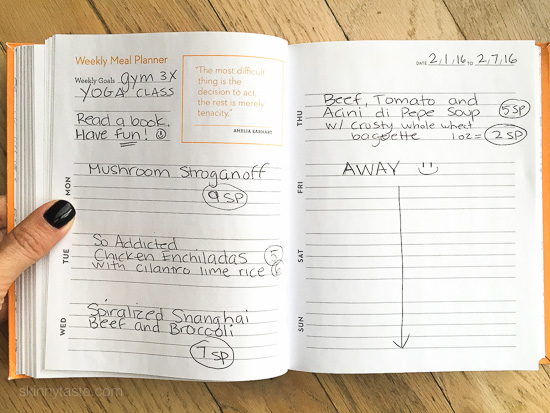A 52-week meal planner, food tracker and exercise tracker in one. I've included the Smart Points next to the recipes since I am currently on Weight Watchers. Also, if you have The Skinnytaste Cookbook, and currently on Weight Watchers, I have all the Smart Points listed here for your convenience.
