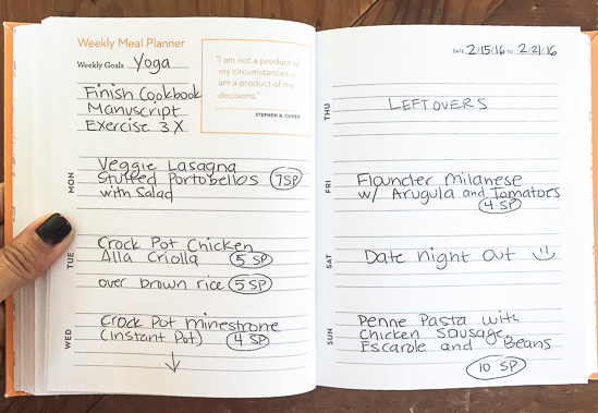 Happy Saturday! I was away in Jamaica last week for a fun family vacation, but I'm back and happy to be in my kitchen again. This is week 16 of my weekly dinner plans. I use The Skinnytaste Meal Planner pictured below to plan my dinners for the week (you can of course use any meal planner).