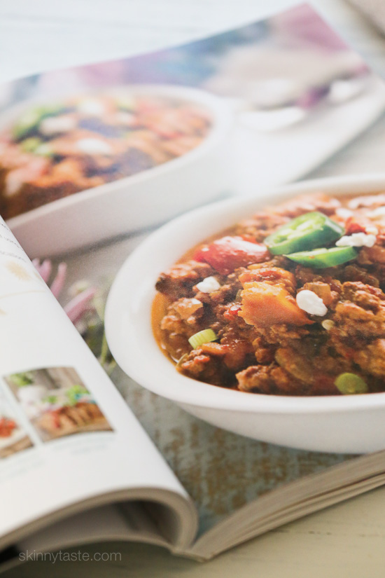 Fall, football games, and chili season is JUST around the corner. Here's a delicious, hearty, bean-less chili recipe made in the slow cooker with ground chicken, ground beef and sweet potatoes – the perfect combination from Juli Bauer's Paleo Cookbook.