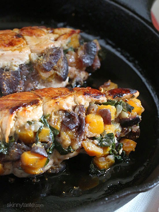 A wonderful Fall dish – turkey tenderloins are stuffed with sauteed butternut squash, spinach and figs, a meal in one with savory and sweet flavors. Figs are seasonal, so if you can't find them, you could use another fruit such as pears or even apples.